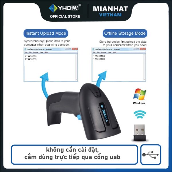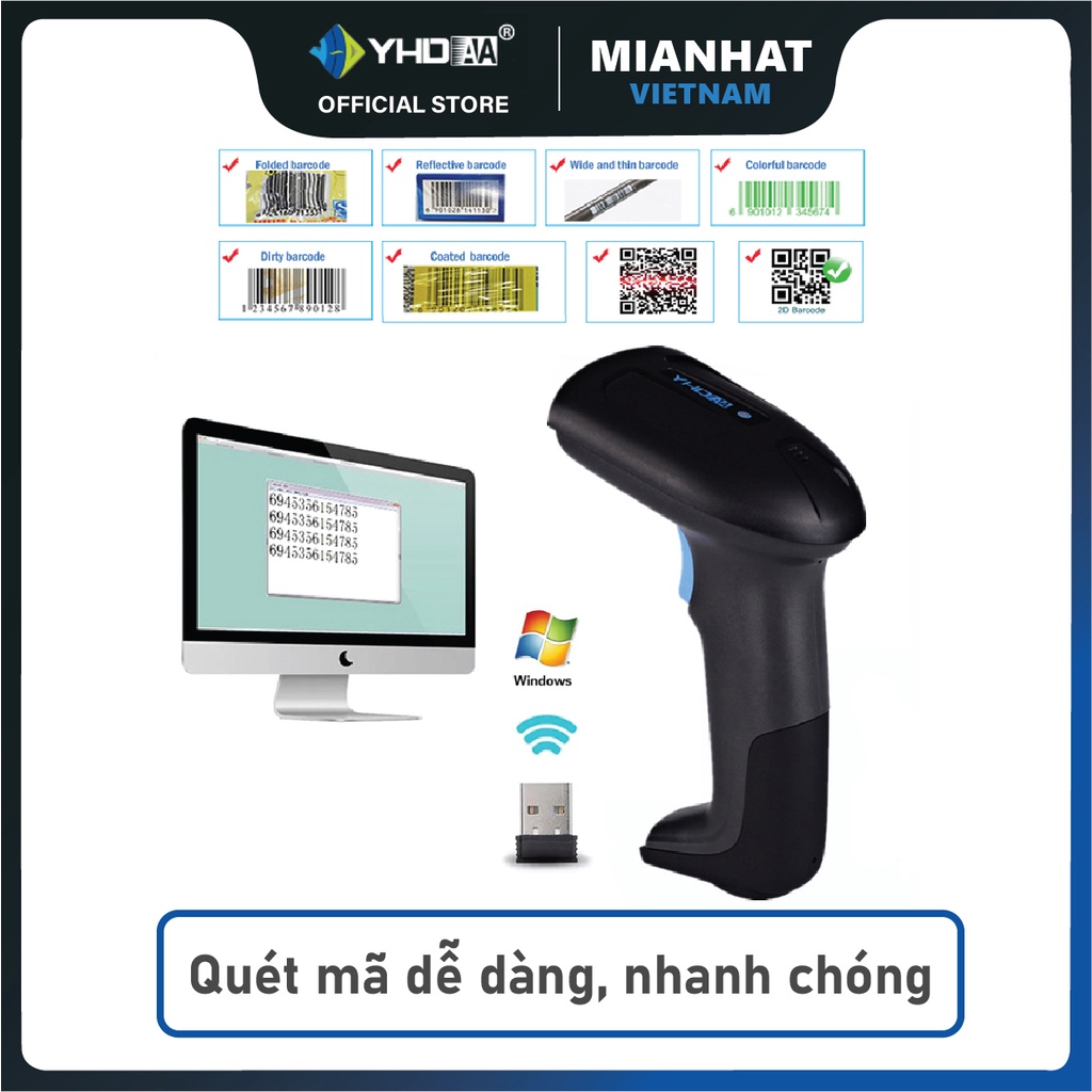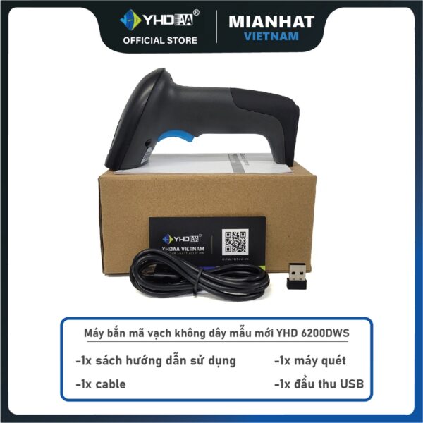 – Máy quét mã vạch không dây mẫu mới YHD 6200DWS 2D hỗ trợ đọc mã vạch Barcode 1D Qrcode 2D KÍCH THƯỚC NHỎ kết nối không dây (2.4G) với Laptop, Máy tính bàn.