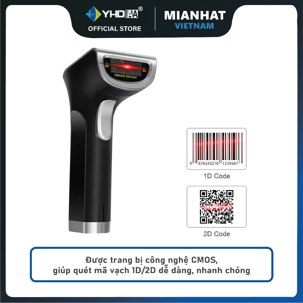 Máy quét mã vạch cầm tay YHD 1200D đọc mã vạch Barcode 1D Qrcode 2D mẫu mới dùng dây cắm cổng USB Máy tính, Laptop