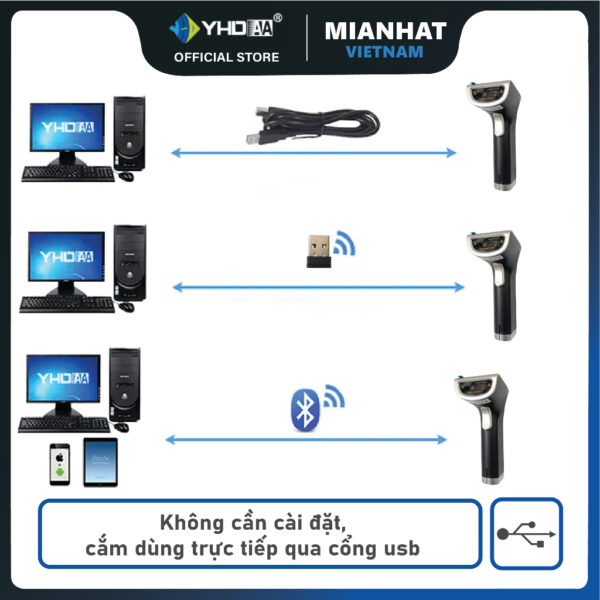 Máy bắn mã vạch không dây YHD 1200CW 1D, Máy quét mã vạch không dây USB dùng trên Laptop, PC