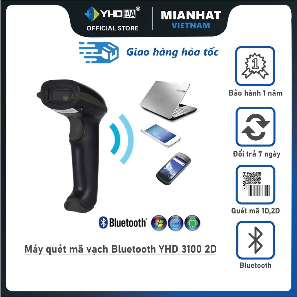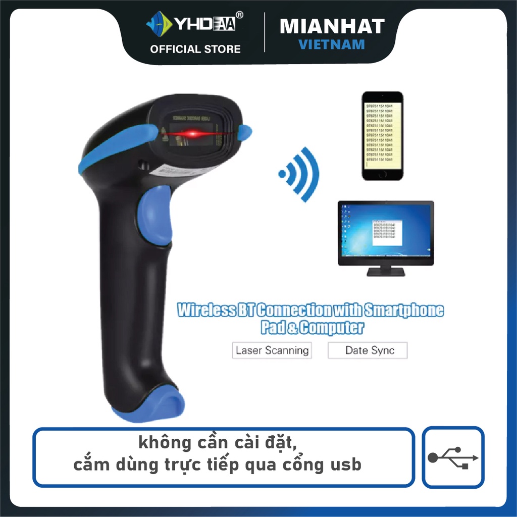 Máy quét mã vạch Bluetooth – Đầu đọc mã vạch không dây QRCODE YHD-3100 2D hỗ trợ kết nối Bluetooth hoặc 2.4G với điện thoại, laptop, máy tính bàn.