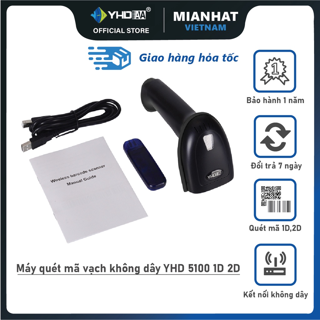 – Máy bắn mã vạch không dây Qrcode YHD 5100 2D đột phá chức kết nối không dây tới 400m với Laptop, Máy tính bàn.