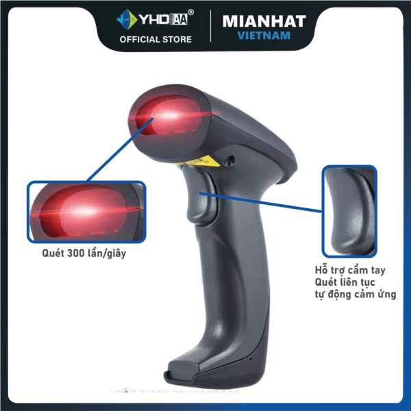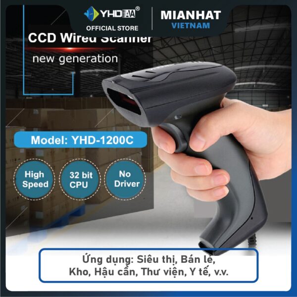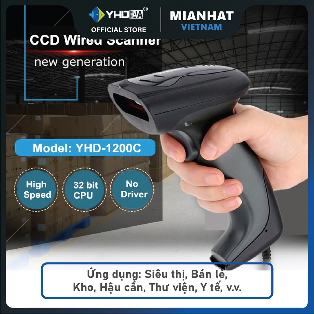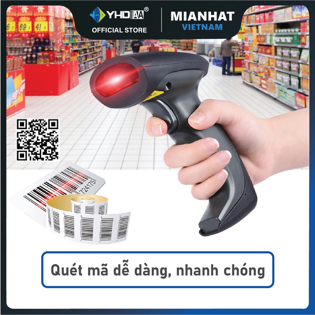 – Đây là thiết bị đầu đọc được nâng cấp từ model máy quét mã vạch YHD 1100C 1D quét mã Barcode (mã vạch đa tia dài dẹt hình chữ nhật) là loại mã vạch thông dụng nhất hiện nay, có tính bảo mật tốt, chứa đựng được nhiều thông tin dữ liệu, được ứng dụng rộng rãi trong việc thanh toán, thẻ card, thẻ cào, mã vận đơn sàn thương mại điện tử, mã hàng hóa, mã sản phẩm các chiến dịch quảng cáo hoặc truy cập thông tin.