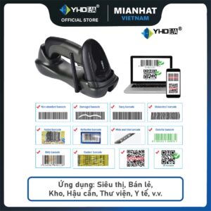YHD 5300DM 2D có thể đọc tất cả các mã vạch Barcode (1D) Qrcode (2D) kích thước nhỏ trên bao bì sản phẩm hàng hóa bóng nhạy, trên giấy in nhiệt, giấy mờ nhăn, tem in thiếu mã, trên màn hình điện thoại, máy tính….
