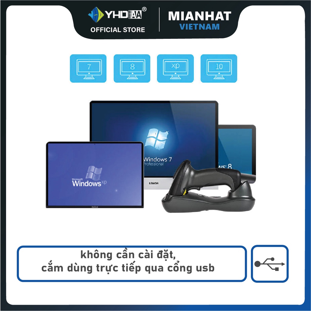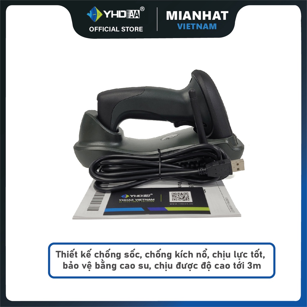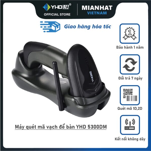 Máy đọc mã vạch siêu thị YHD 5300DM 2D có đế sạc, Đầu đọc mã Barcode 1D Qrcode 2D mẫu mới dùng trên Máy tính, Laptop
