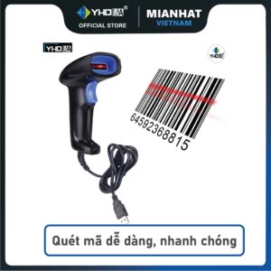 Máy quét mã vạch giấy in nhiệt YHD 1100C 1D – Máy Scan mã vạch Barcode(1D) cầm tay có dây dùng trong Cửa hàng, Siêu thị