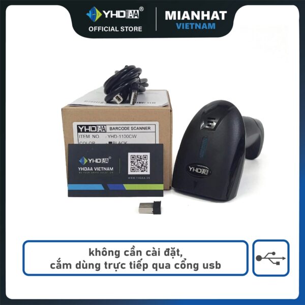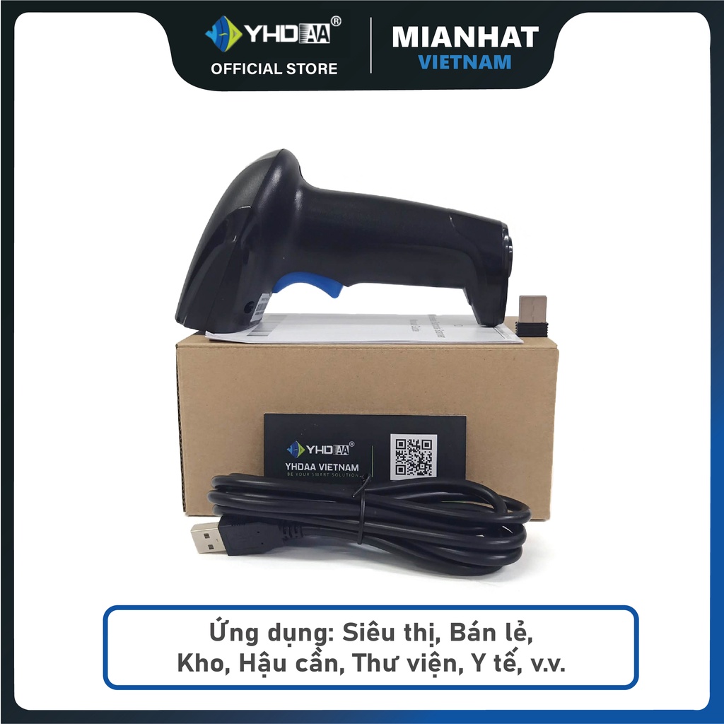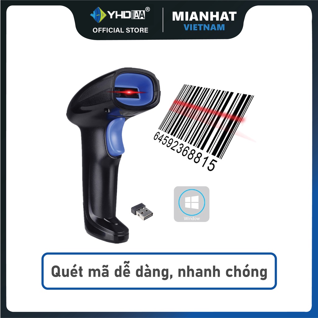 Máy quét mã vạch không dây mẫu mới YHD 1200DW đọc mã vạch Barcode 1D Qrcode 2D kết nối USB dùng trên Máy tính