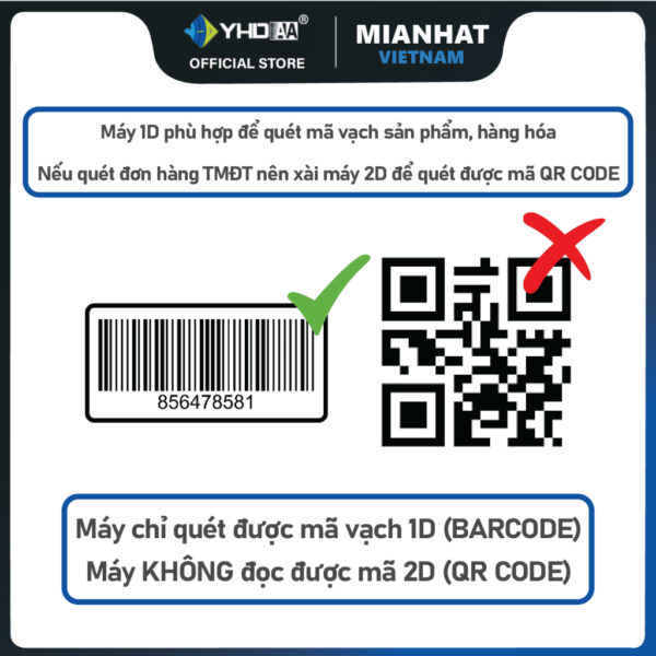 – Có thể quét trên màn hình điện thoại, máy tính và màn hình điện tử khác, giấy tem in nhiệt, mã sản phẩm hàng hóa
