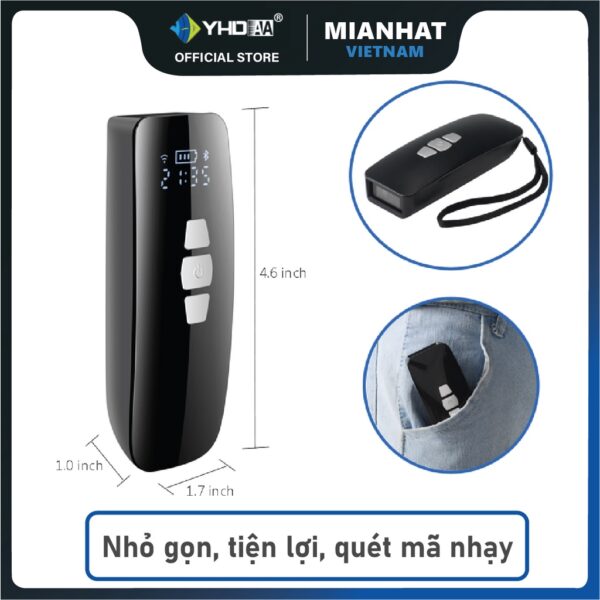Máy quét mã vạch 2D không dây Bluetooth có màn hình hiển thị vạch pin YHD-6700DB, hàng chính hãng, bảo hành 1 năm