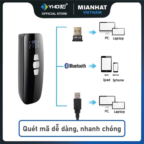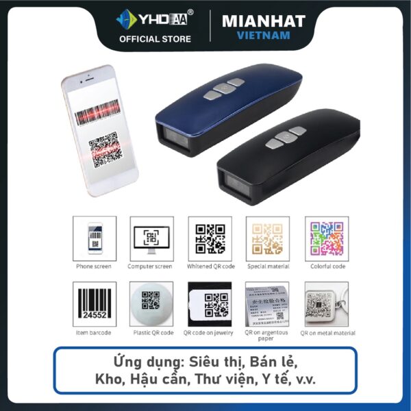 Máy quét mã vạch Qrcode(2D) YHD 1100DW không dây - Đầu đọc mã vạch Qrcode(2D) không dây kết nối USB dùng trên Máy tính bàn, Laptop, PC