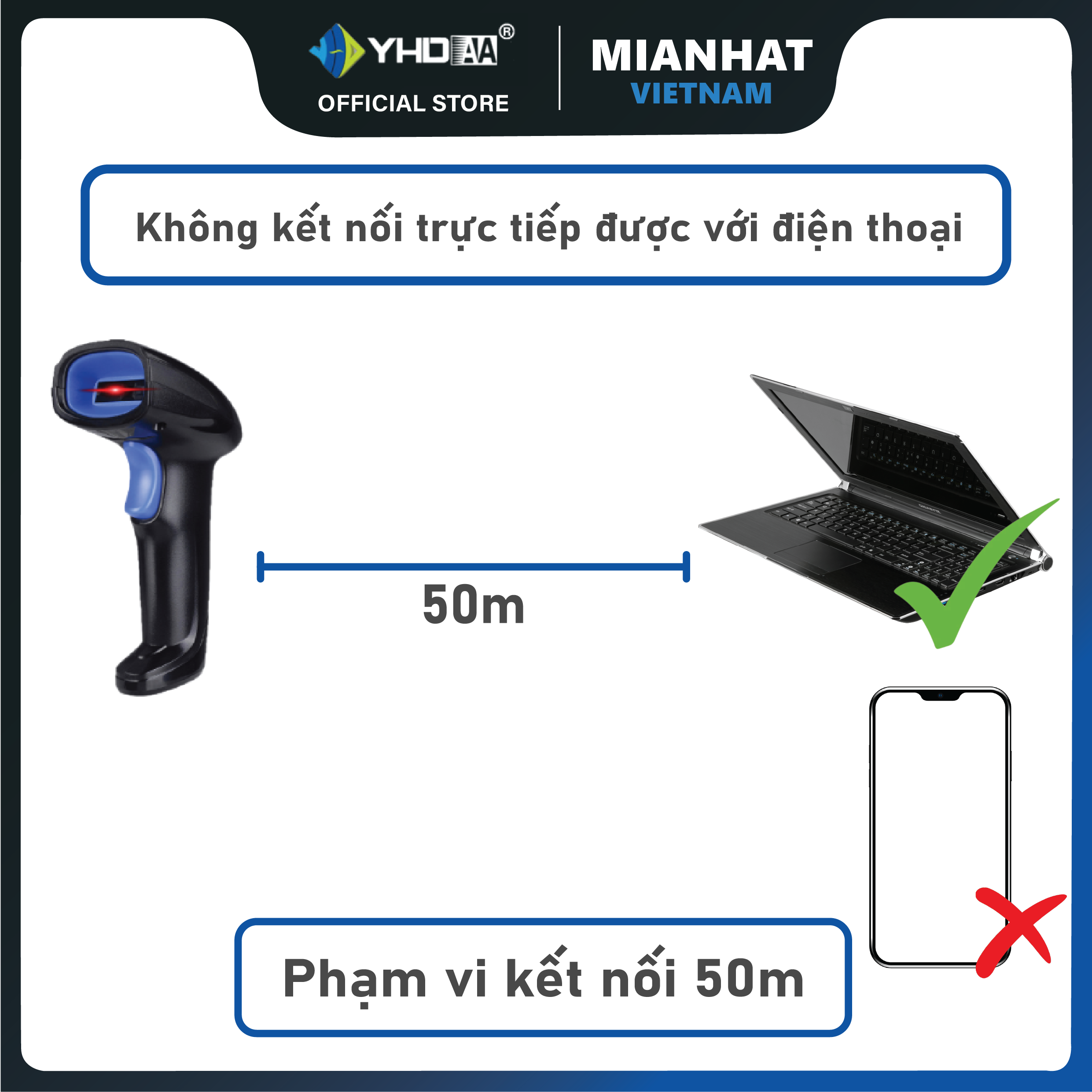 Máy quét mã vạch không dây YHD-6200DB 2D - Máy bắn mã vạch QR kết nối Bluetooth/ 2.4G/ Có dây dùng trên Điện thoại, PC